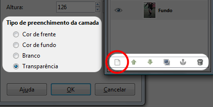 Agora vá na janela de Camadas e aperte o botão destacado na imagem abaixo e escolha o preenchimento transparente.